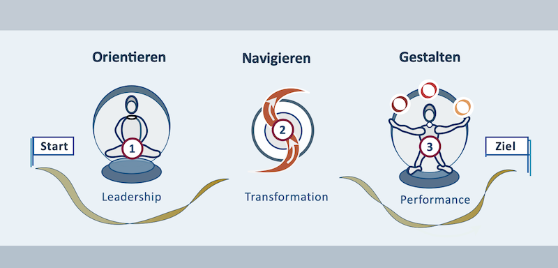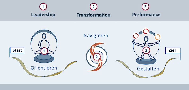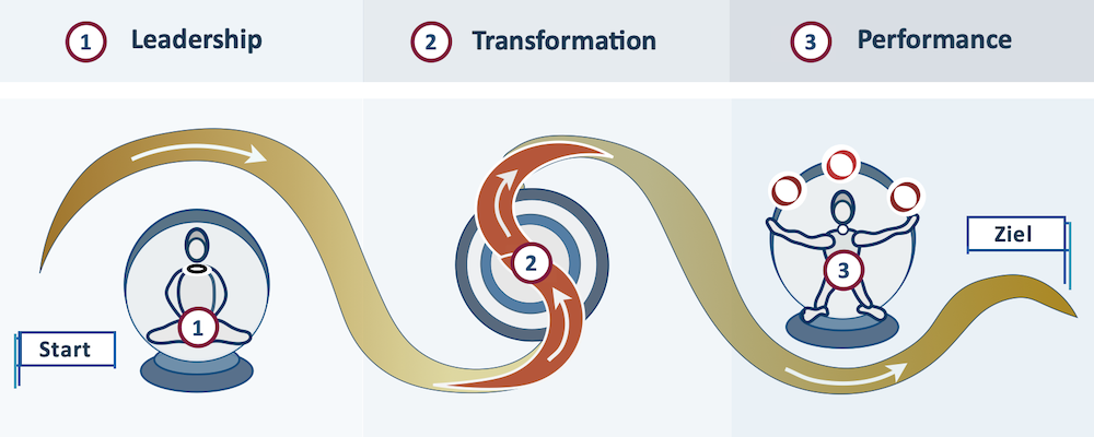 (1) Leadership, (2) Transformation und (3) Performance. In einem einfachen Satz gesagt: Ich (1) wirke (2) in der Welt (3)