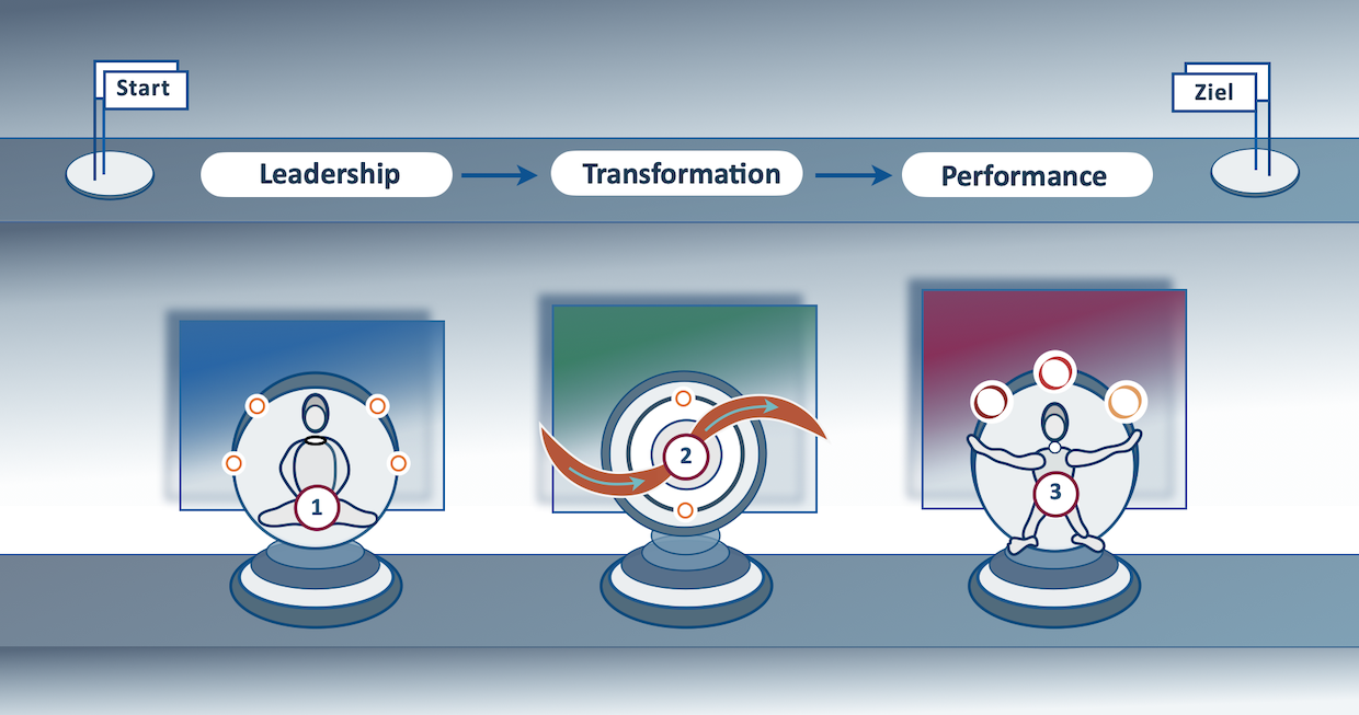 | Transformation ist die Steuerung der Prozesse im Innen und im Aussen. Es ist der Einsatz der Werkzeuge wie Führung, Kommunikation und Konfliktgestaltung.